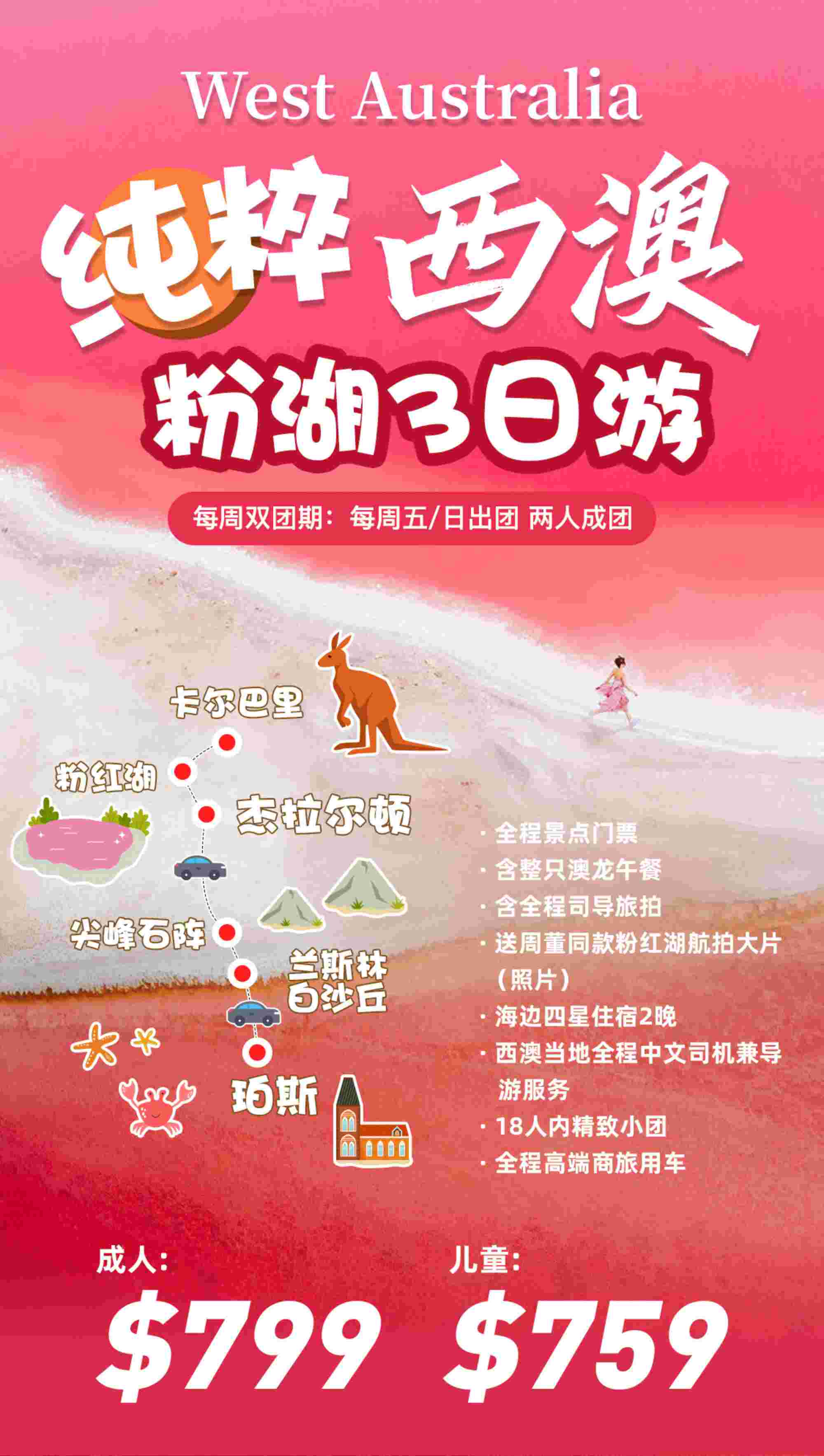澳大利亚 | 西澳 珀斯 上帝眼泪-粉红湖3日深度游 -(有机会送粉红湖航拍大片)-18人精准小团-周五周日发团