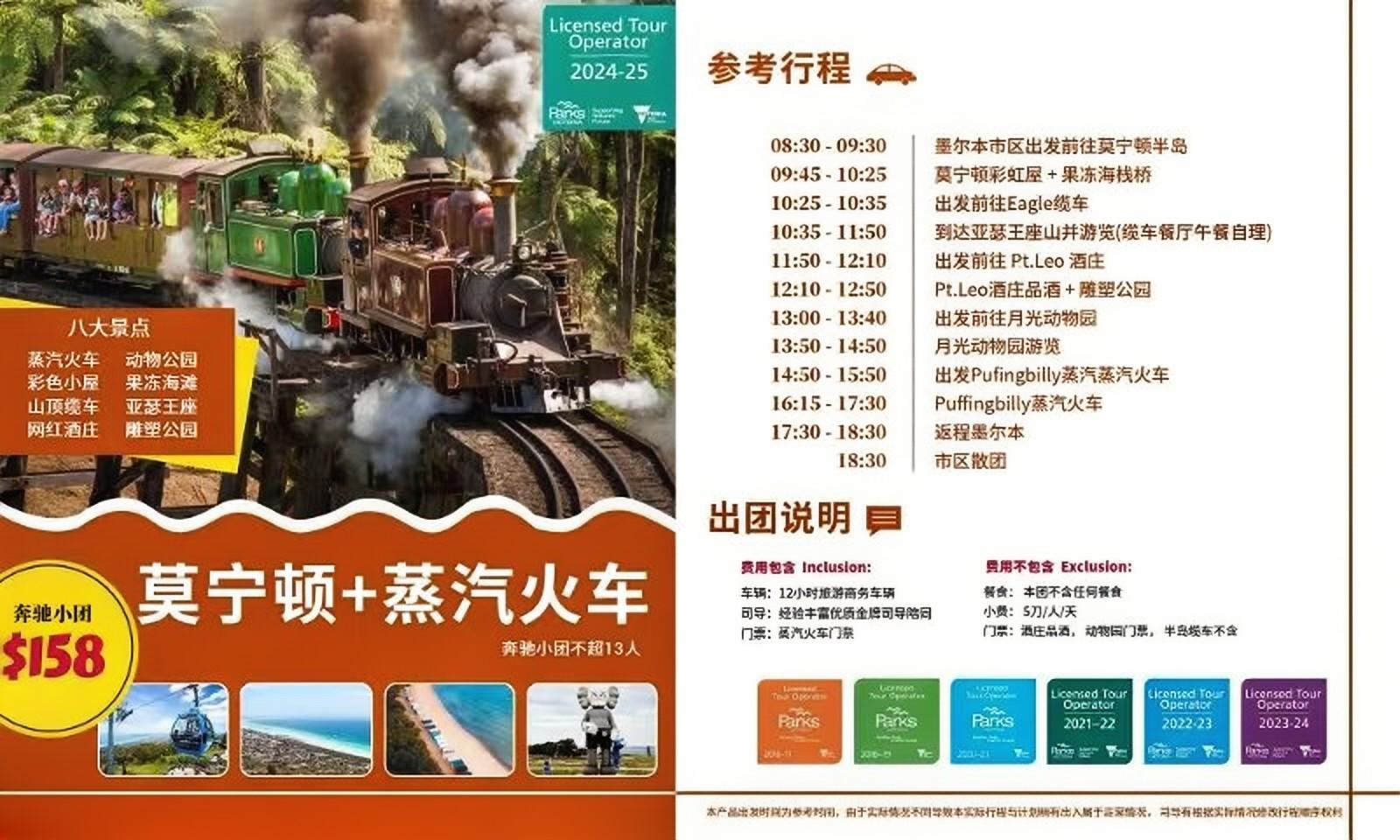 澳大利亚 | 墨尔本 奔驰团 莫宁顿半岛+古董蒸汽火车一日游(最多13人小团)