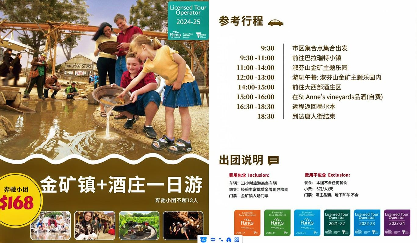澳大利亚 | 墨尔本 奔驰团 金矿+酒庄 一日游(最多13人)周日固定发团