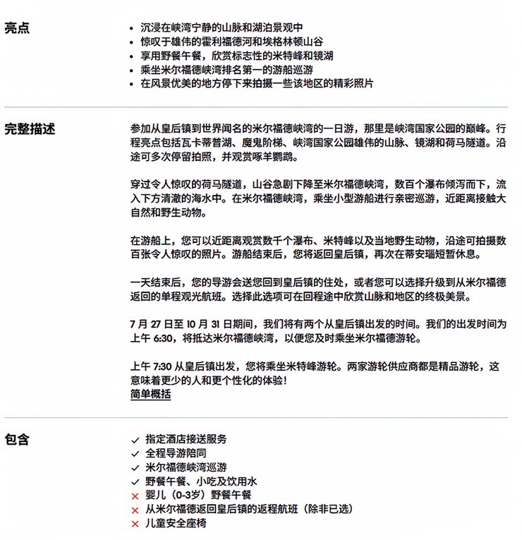 踏上一段难忘的旅程,从皇后镇到新西兰最具代表性的目的地之一米尔福德峡湾。这场全天探险之旅将为您带来令人惊叹的美景和独特的体验。