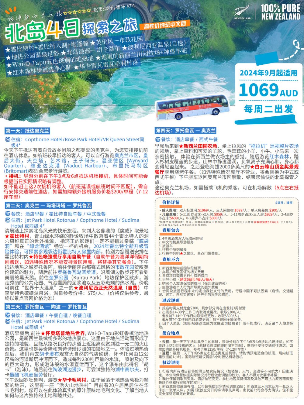 行程亮点: ★霍比特村+霍比特人洞+帐篷自助餐 ★英伦风-市政花园 ★地热公园温泉足浴 ★胡卡瀑布 ★波利尼西亚温泉(自选) ★Wai-O-Tapu 公园游览五色斑斓的地热池 ★地道的新西兰田园牧场+神兽羊驼 ★红木森林步道洗净心肺 ★华卡雷瓦雷瓦毛利村落
