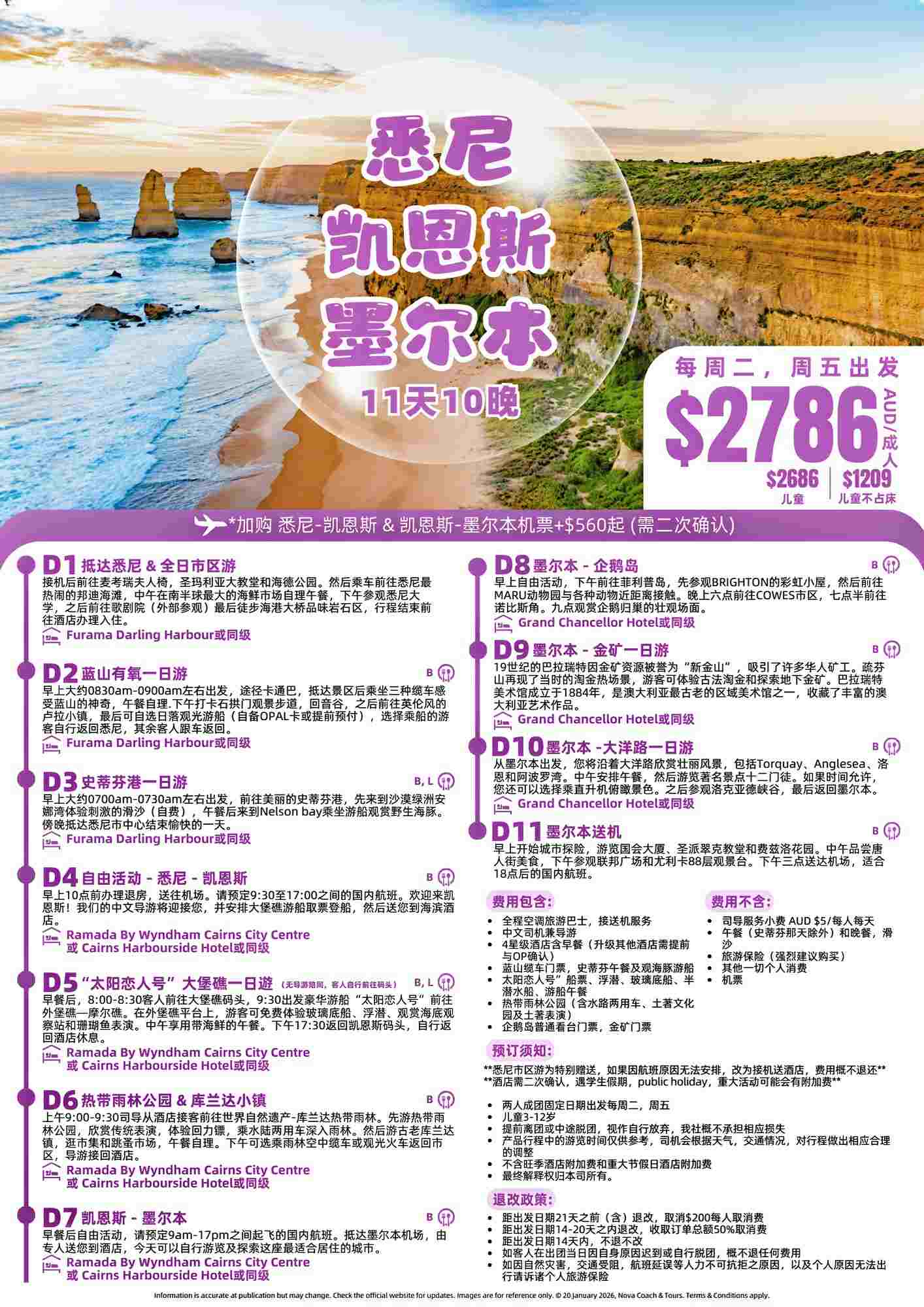 澳大利亚 | 悉尼-凯恩斯-墨尔本11天游【澳洲本地拼团 周二,周五出发】-需包车请另询