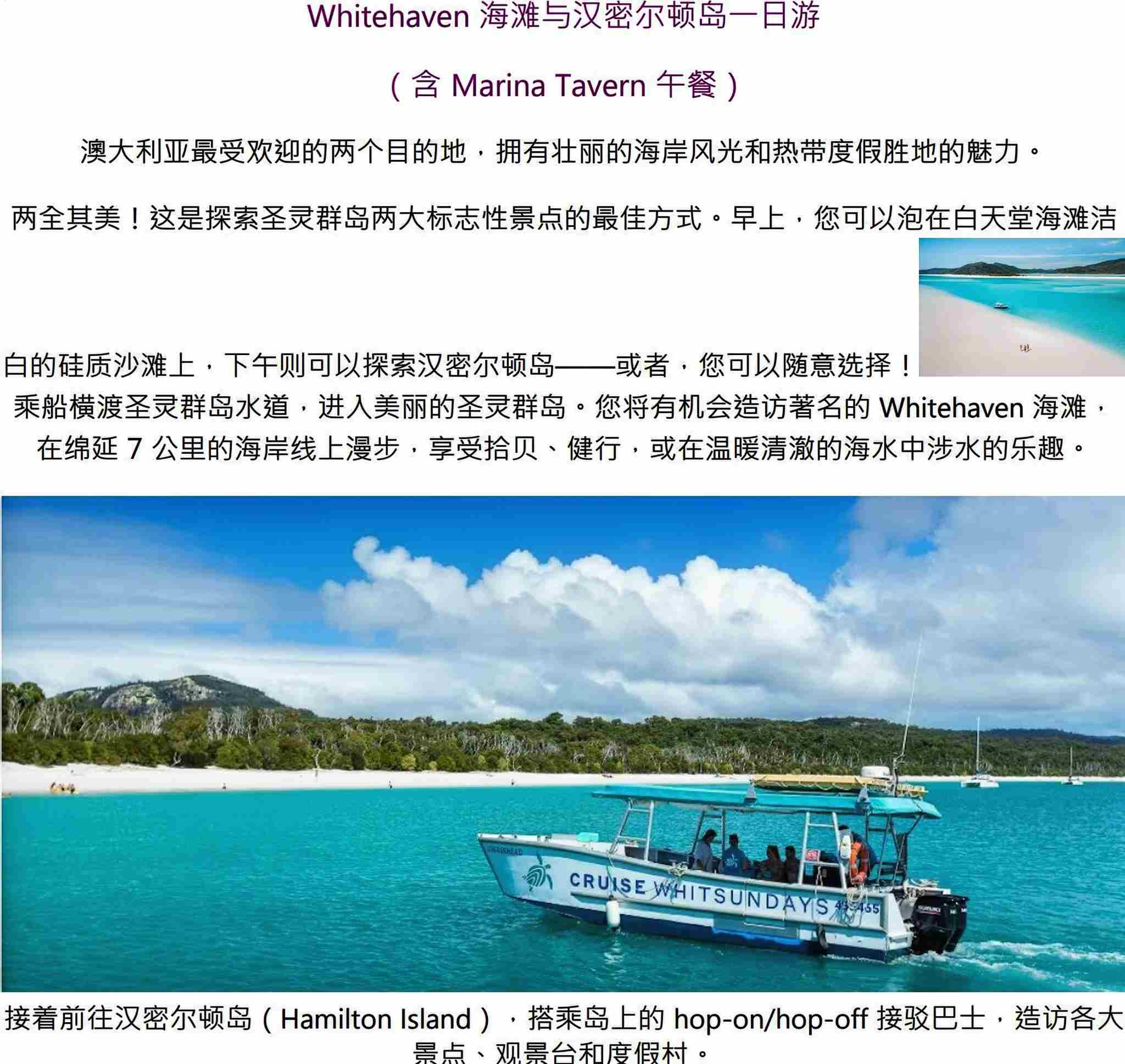 澳大利亚 | 圣灵群岛 白天堂沙灘 & 漢密尔顿岛一日游 #艾尔利往返(英文导览)Whitehaven Beach and Hamilton Island Afternoon (Marina Tave