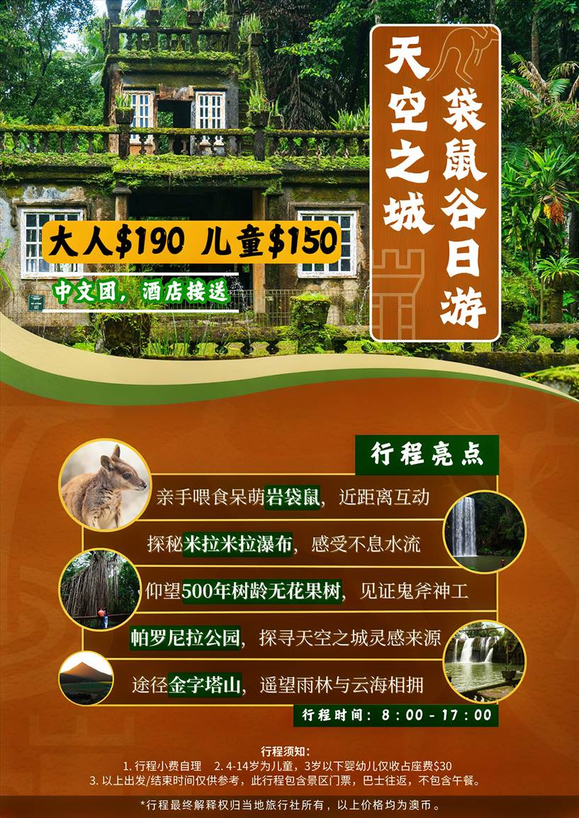 澳大利亚 | 凯恩斯 天空之城袋鼠谷高地一日游(中文精品本地团 )