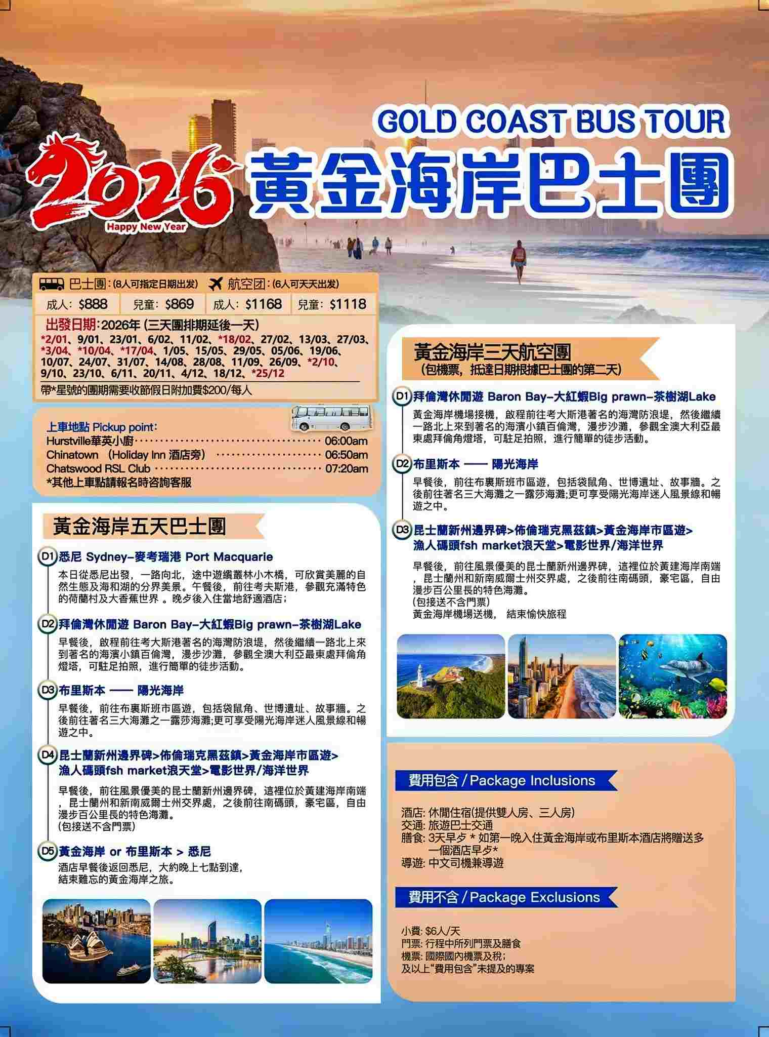 澳大利亚 | 悉尼往返-黄金海岸巴士团5日游【固订日期出发】深度游览最美小镇,品味澳洲慢节奏生活 打卡大香蕉和大熟虾,感受澳洲自然生态 打卡黄金海岸主题公园与电影中的角色合影,欣赏水下游泳的北极熊