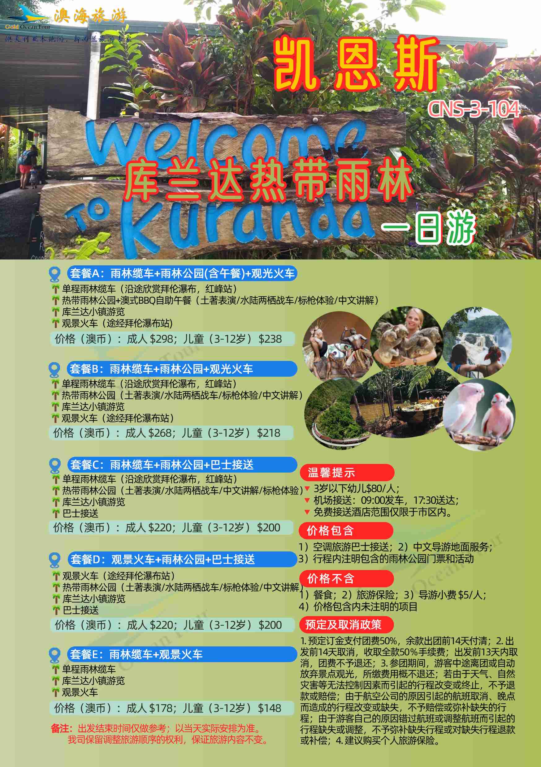 澳大利亚 | 凯恩斯 ~ 库兰达热带雨林经典一日游( 多种套餐客选,您的行程您做主)