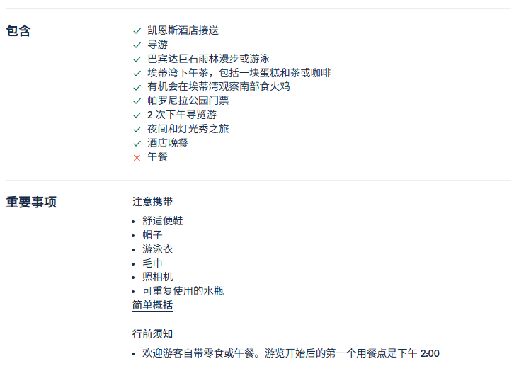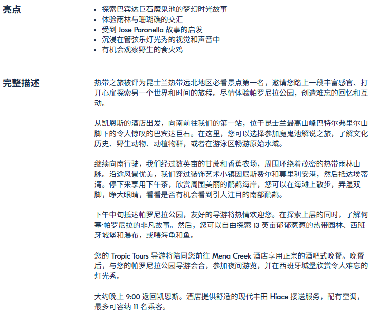 去雨林漫步或在巴宾达巨石游泳,在海滩上享用下午茶,有机会发现南部食火鸡,探索帕罗尼拉公园,并在从凯恩斯出发的一日游中享用晚餐。