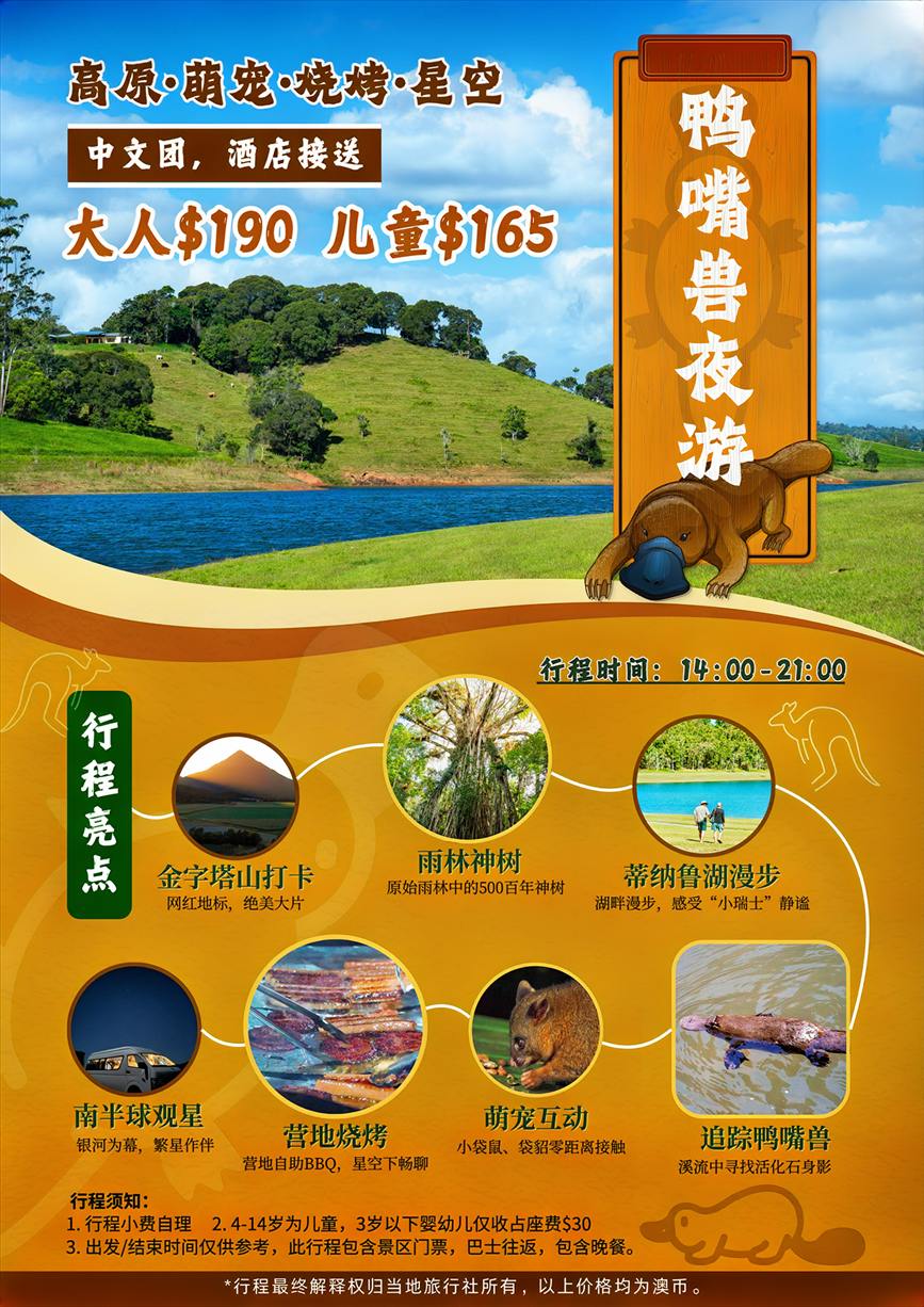 澳大利亚 | 凯恩斯 雅瑟顿高原生态游~夜访森林中的精灵鸭嘴兽夜游【金字塔山-大教堂无花果山树-恐龙活化石鸭嘴兽-小瑞士湖畔-野营烧烤晚餐】
