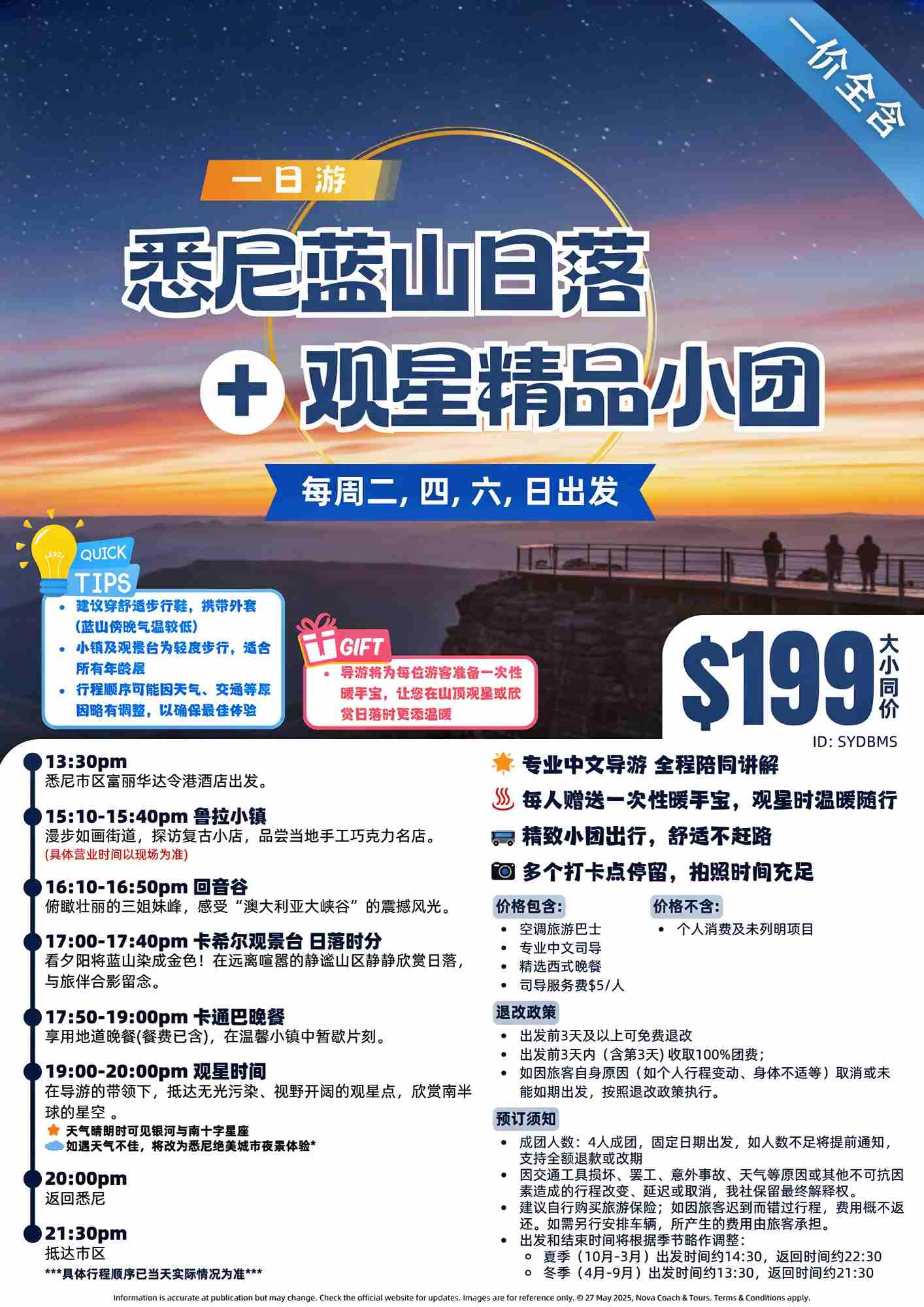澳大利亚 | 悉尼周边 蓝山一日游可选日游有氧一日游小团( 含动物园)/ 蓝山观星夜游团