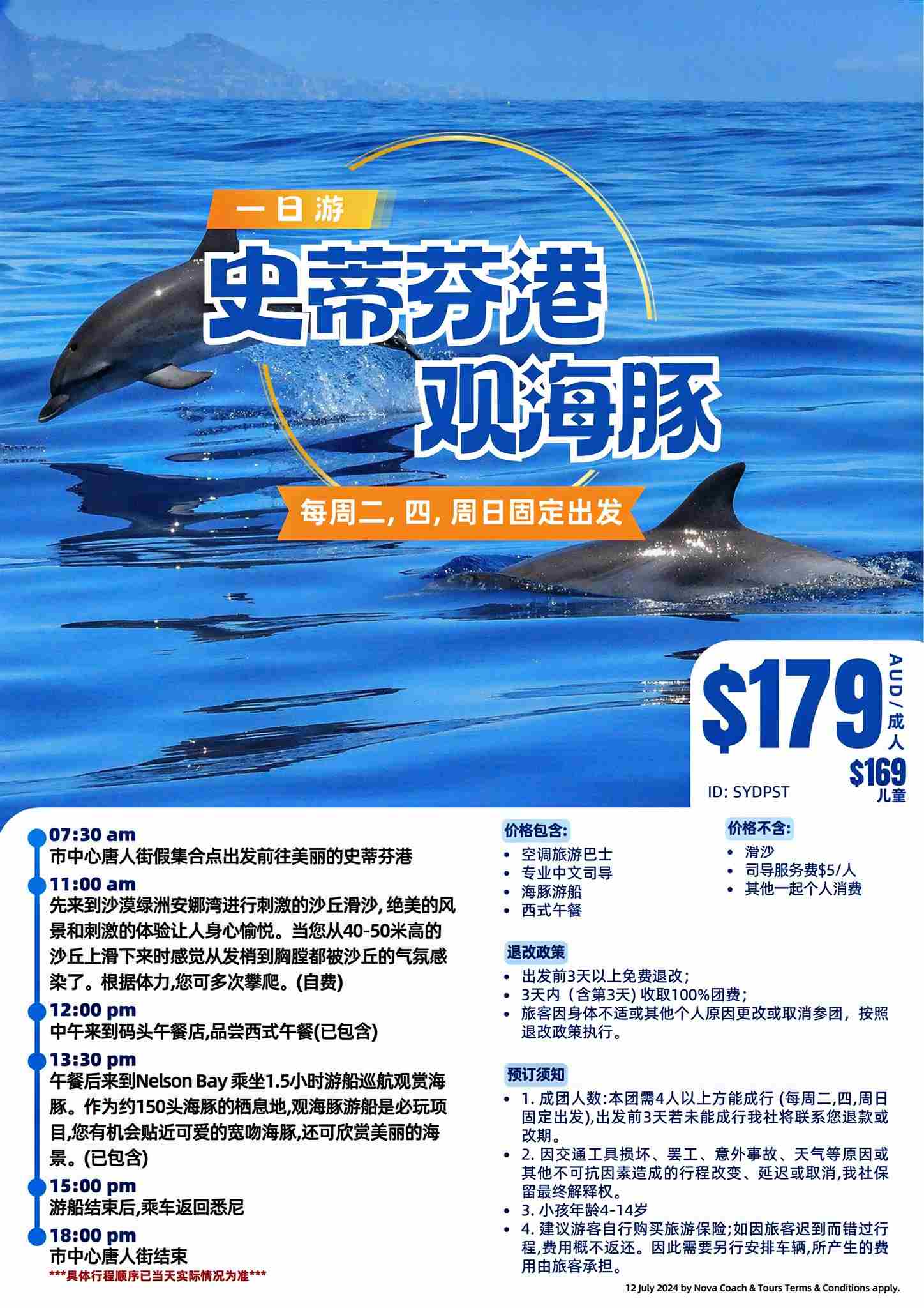【每周二、四、日固定出发】含史蒂芬港观海豚和午餐,滑沙可选 (4月1日起出发新行程)